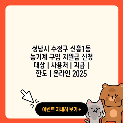 ✅ 성남시 신흥1동의 농기계 지원금 혜택을 자세히 알아보세요.