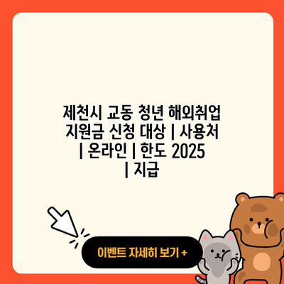 ✅ 제천시 청년 해외취업 지원금 혜택을 자세히 알아보세요.